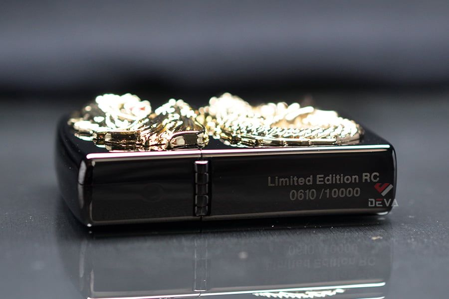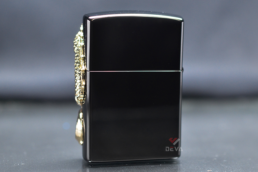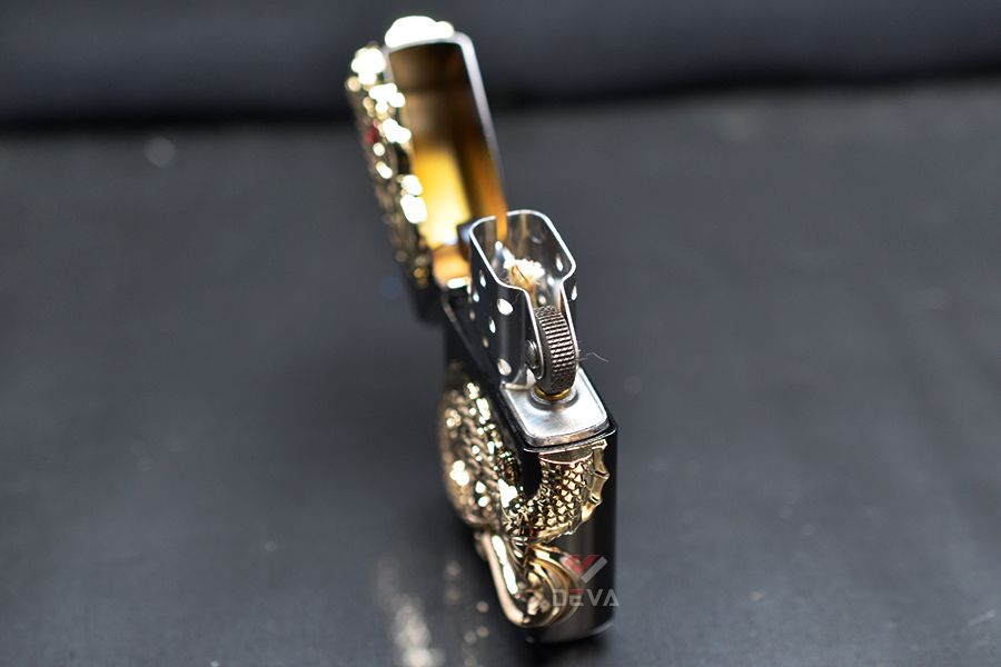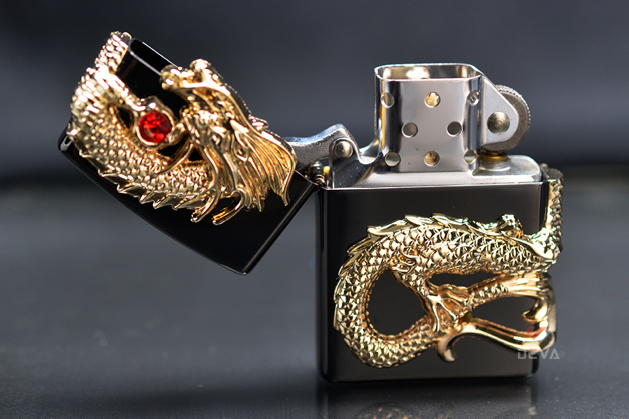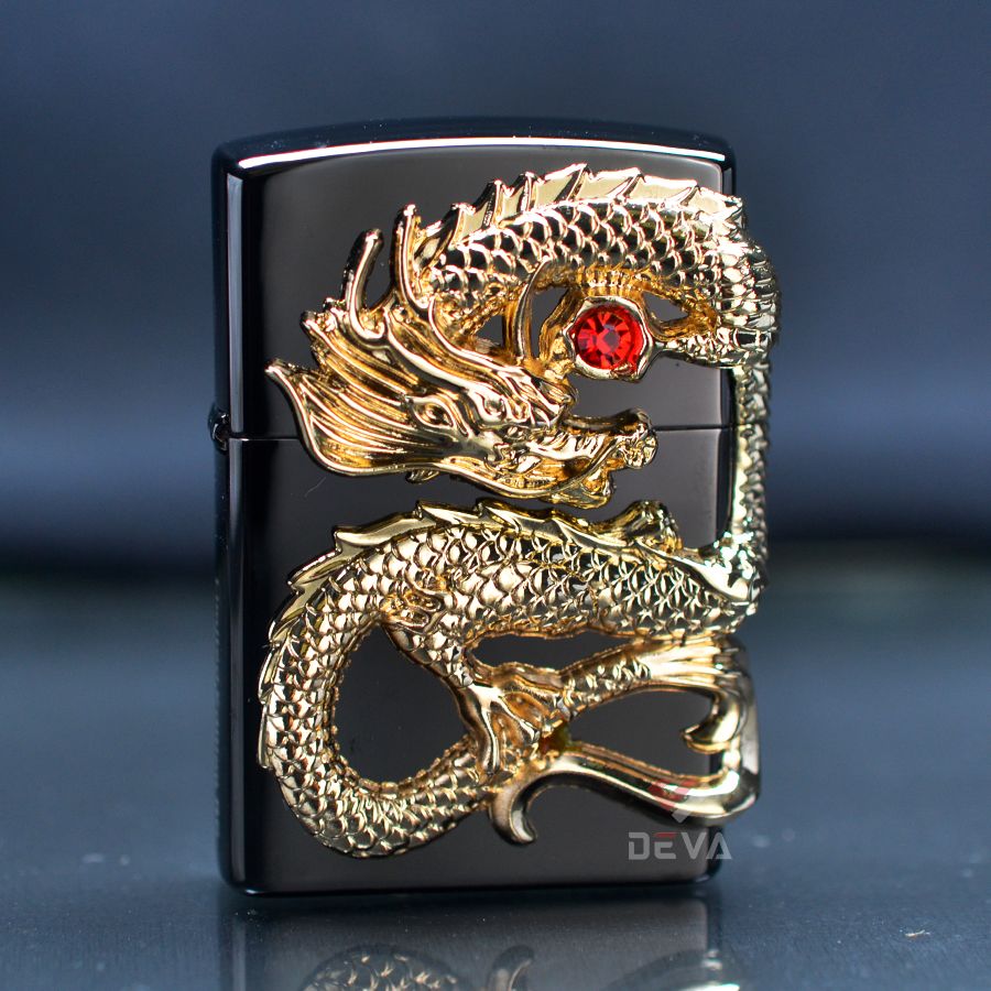 Bật Lửa Xăng Đá Chính Hãng Zorro Đen Bóng Ốp Nổi Rồng Vàng Ôm Ngọc Bản Giới Hạn Z91320A: