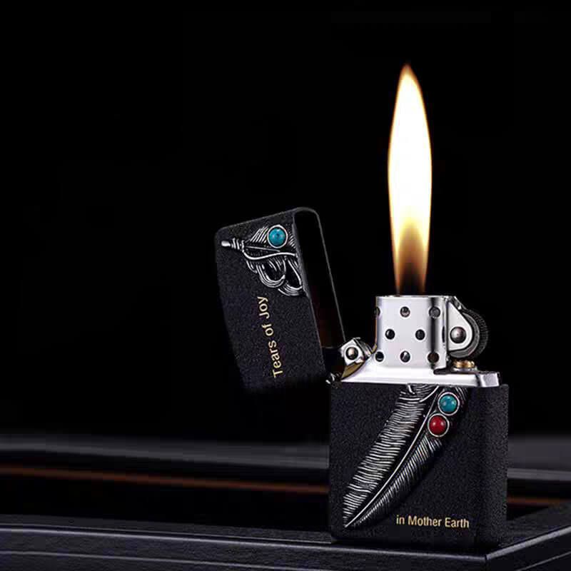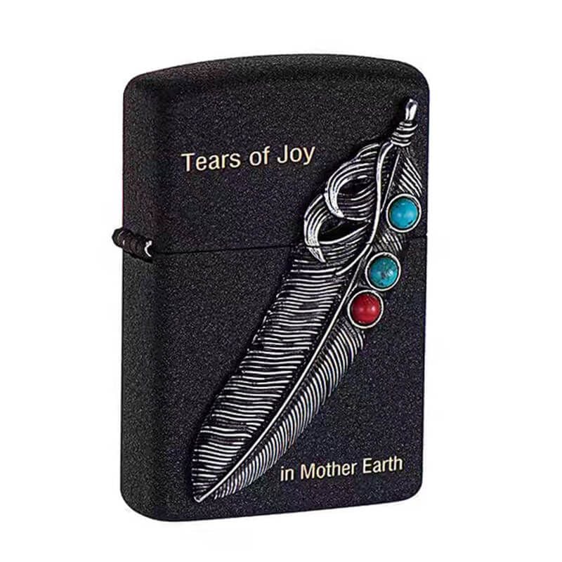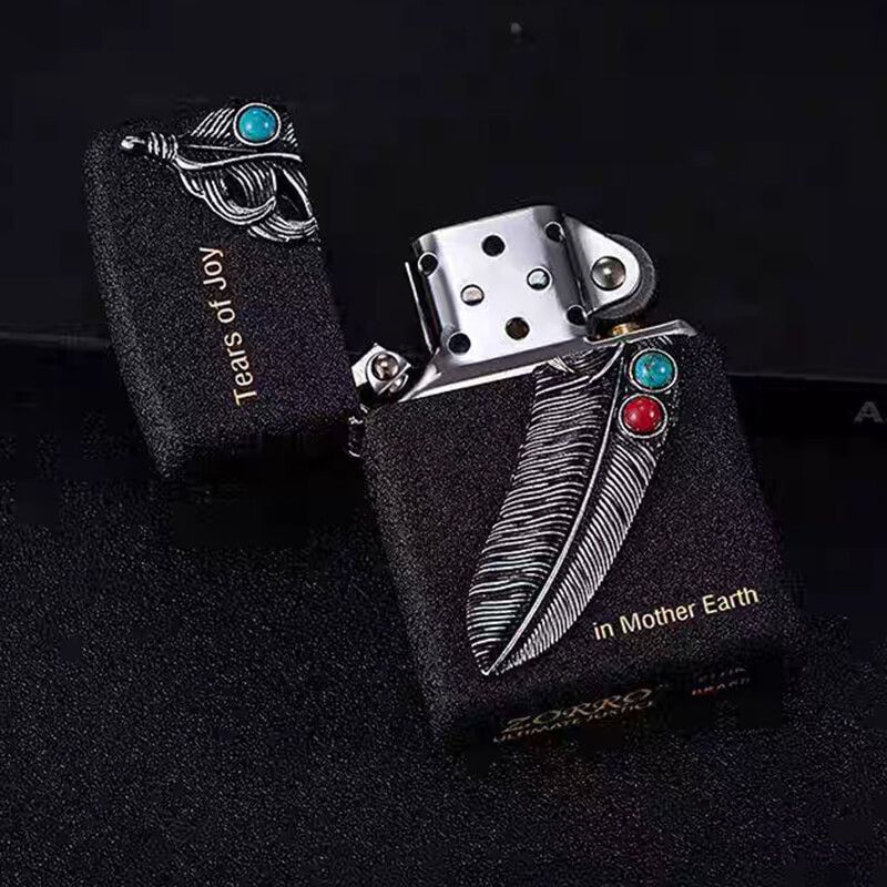 Bật Lửa Chính Hãng Zorro Đen Sần Gắn Emblem Lông Chim Thổ Dân Ốp Đá Z8705A: