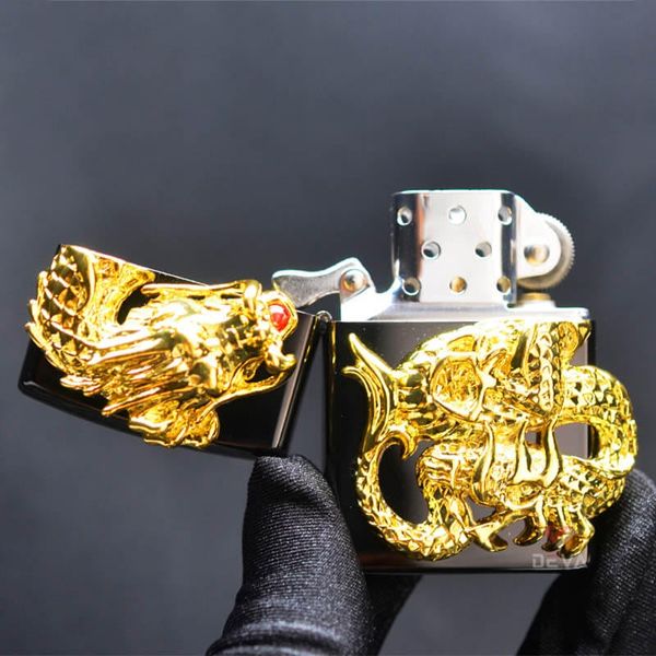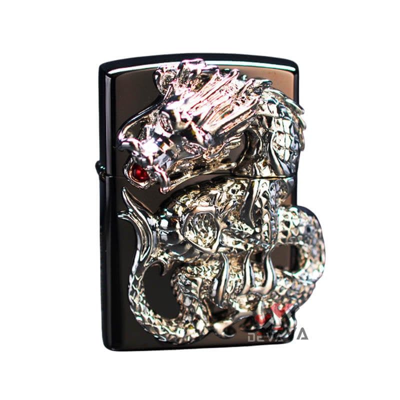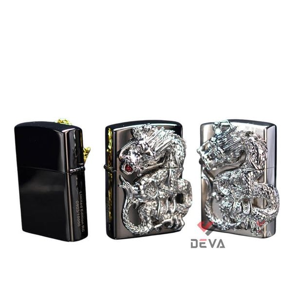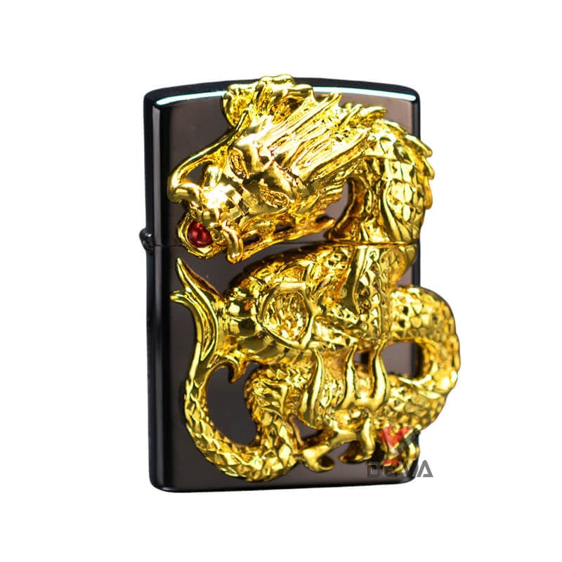 Bật lửa xăng đá chính hãng Zorro ốp tượng rồng ngậm châu bản giới hạn Z91441