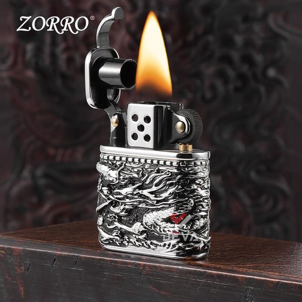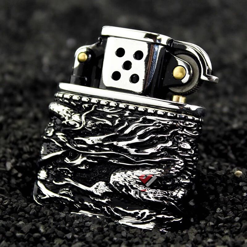 Mẫu bật lửa xăng đá Zorro ốp rồng nổi Z506-628: